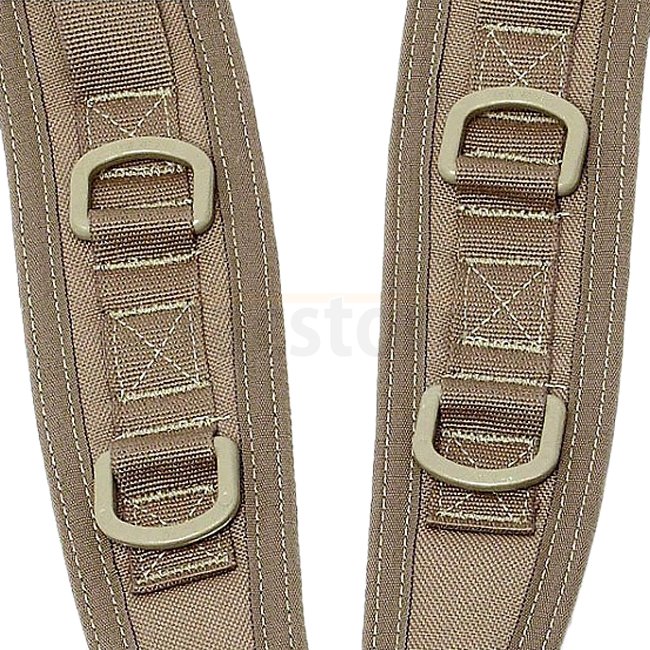 Harnais profil bas Warrior - Coyote : Compatible avec la ceinture PLB, boucles de réglage à libération rapide à l'avant et à l'arrière, 4 boucles d'attache pour anneaux en D.