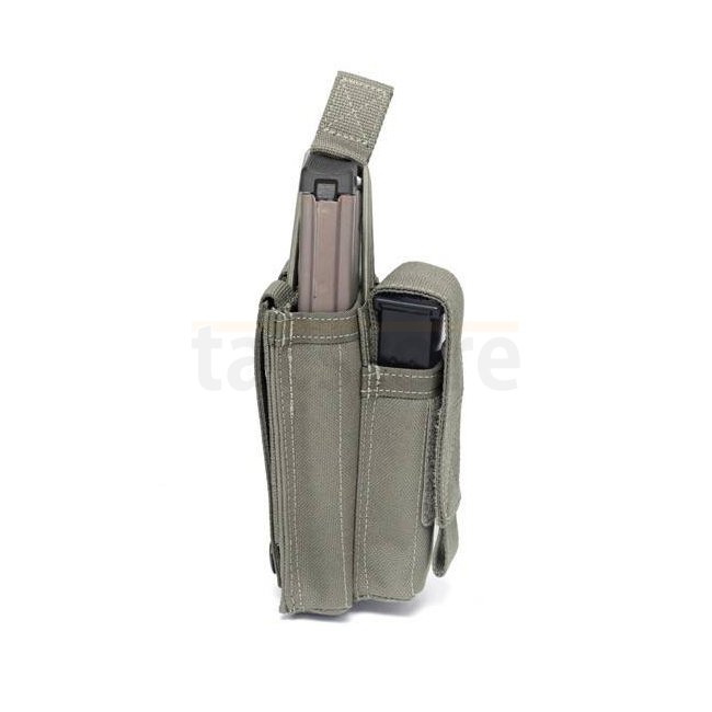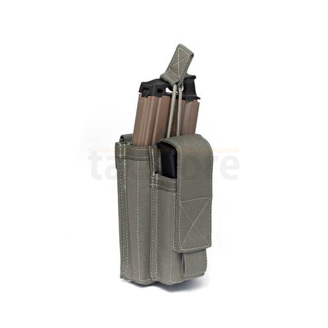 La célèbre Single Open D.A. 5,56mm de Warrior est désormais disponible avec l'ajout d'une pochette pour chargeur de pistolet 9mm fixée à l'avant. Cette pochette « Kangaroo » est conçue pour contenir des chargeurs de type M4 de 5,56mm x 45mm en version métal et polymère (excluant les chargeurs G36). Le compartiment principal est accessible grâce à une rétention par élastique, tandis que la pochette pour chargeur de pistolet est ouverte par un couvercle en velcro doté d'ajustements internes en hauteur pour s'adapter aux différentes tailles de chargeurs. Cette pochette est équipée de 2 bras MOLLE à l'arrière et occupe 2 rangées horizontales MOLLE, assurant une compatibilité optimale avec tout équipement tactique.