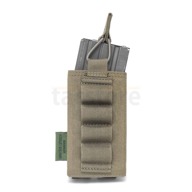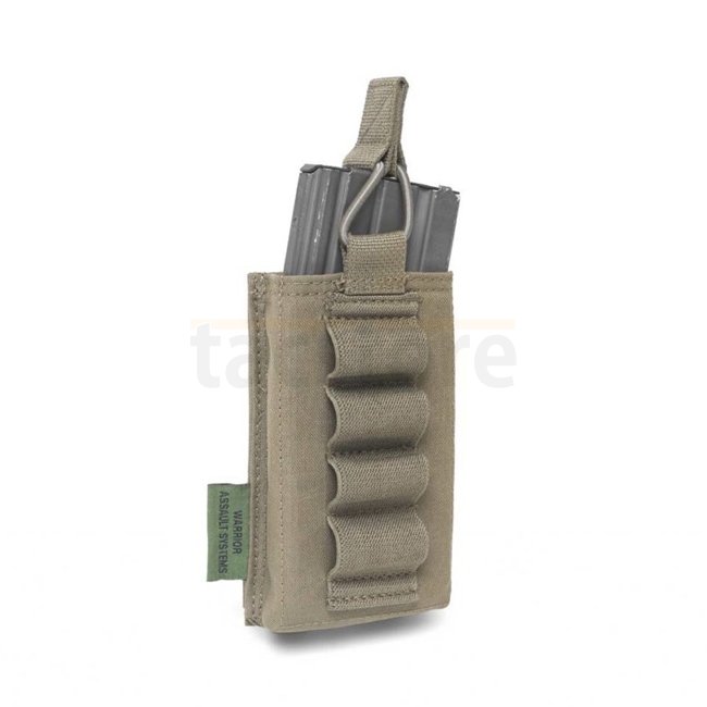 La pochette Warrior Single Open 5,56mm est dotée d'une rétention élastique permettant des changements de chargeurs rapides et fluides. Son design discret comprend un espace pour quatre cartouches de fusil de chasse Hatton 12-gauge ou des cartouches de marquage CS. Le compartiment principal est doublé d'un matériau antidérapant Posigrip pour un maintien optimal du chargeur.
