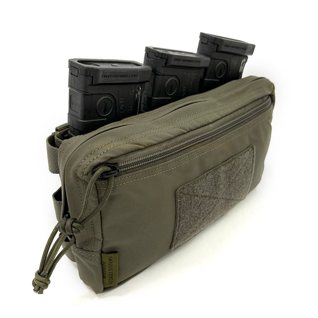 La pochette utilitaire Warrior Triple Snap Mag est conçue pour s’adapter à diverses missions. La section arrière peut contenir 3x chargeurs de 5.56mm ou 3x chargeurs de 7.62mm x 39mm AK dans des inserts thermoplastiques sécurisés pour un accès rapide. La poche avant, dotée de deux fermetures éclair, offre un grand espace pour stocker du matériel spécifique à la mission, tel que des kits médicaux, outils de navigation, gants, multitools, cartes et documents administratifs. Une poche en maille interne permet une meilleure organisation des objets.