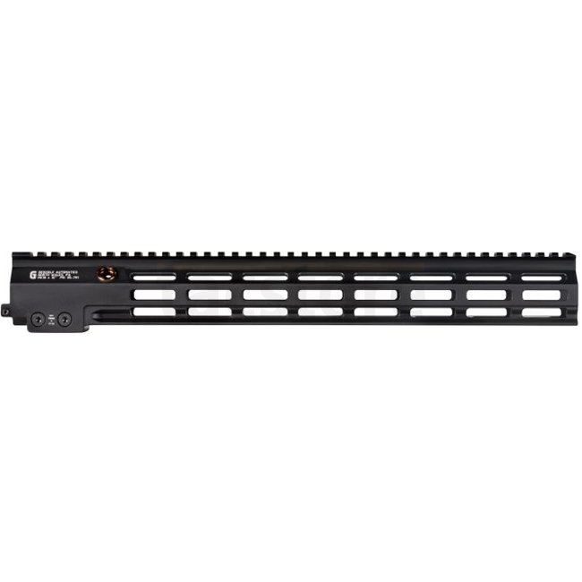Das Geissele 16" Super Modular Rail MK18 M-LOK Arca-Swiss in Schwarz bietet unübertroffene Modularität für Wettkampfschützen mit seiner Arca-Swiss-Schnellverschlusskompatibilität und schlankem Profil.