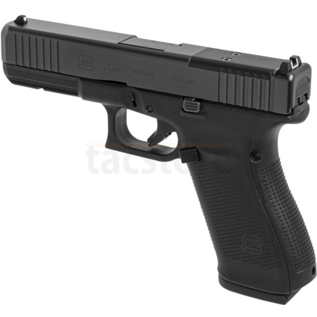 Die Glock 21 Gen 5 MOS FS kombiniert die ikonische Durchschlagskraft des Kalibers .45 ACP mit den neuesten Fortschritten der Glock Gen 5-Serie. Mit Front Serrations (FS) für verbesserte Schlittenmanipulation und dem Modular Optic System (MOS) zur Montage von Reflexvisieren ist diese Pistole perfekt für taktische Einsätze, den Dienstgebrauch und Freizeitschießen geeignet. Gen 5-Upgrades wie der Glock Marksman Barrel (GMB), ein erweiterter Magazinschacht und ein umkehrbarer Magazinauslöser sorgen für außergewöhnliche Zuverlässigkeit und Anpassungsfähigkeit in jeder Situation.
