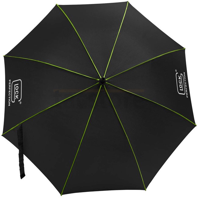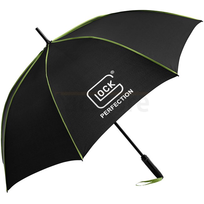 Der GLOCK Spazierstockschirm vereint Funktionalität mit Stil und verfügt über ein windfestes Design, verstärkt durch einen Fiberglasrahmen und lebendige Farbakzente. Ein integrierter Knopf am Soft-Touch-Griff ermöglicht ein müheloses Öffnen mit nur einem Klick.