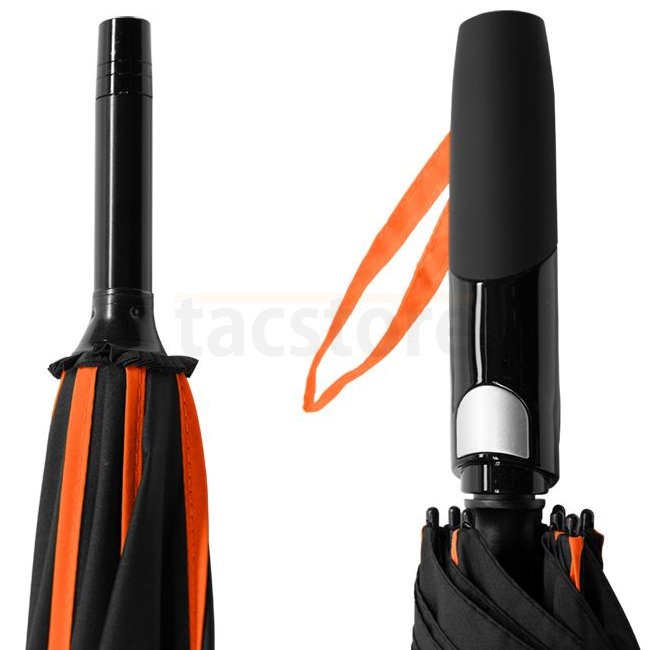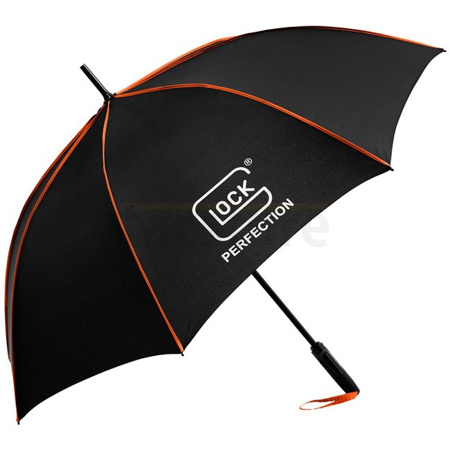 Der GLOCK Spazierstockschirm vereint Funktionalität mit Stil und verfügt über ein windfestes Design, verstärkt durch einen Fiberglasrahmen und lebendige Farbakzente. Ein integrierter Knopf am Soft-Touch-Griff ermöglicht ein müheloses Öffnen mit nur einem Klick.