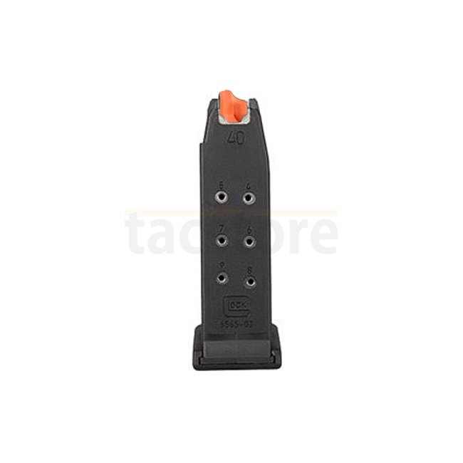 Dieses Glock 27 Magazin bietet eine Kapazität von 9 Schuss im Kaliber .40 S&W und verfügt über einen hochsichtbaren orangefarbenen Follower für erhöhte Sicherheit und Zuverlässigkeit. Mit einem gehärteten Stahleinsatz, der in strapazierfähigem Polymer eingekapselt ist, wird eine Verformung selbst bei Stürzen aus großer Höhe verhindert. Der doppelt geschnittene Magazinkörper ist mit umkehrbaren Magazinverschlüssen der Gen4- und Gen5-Glock-Modelle kompatibel.