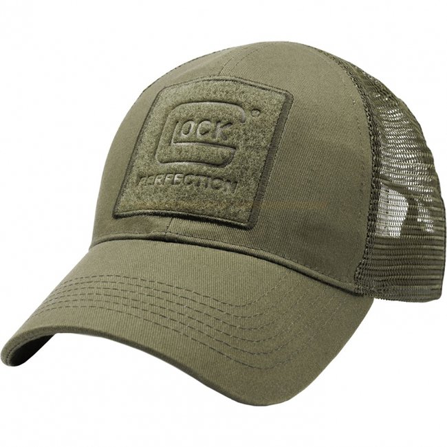 Glock Tactical Cap - Olive: Stylische Kappe aus Baumwolle und Polyester Mesh. Olivfarben mit ikonischem Glock-Logo. Verstellbarer Snapback-Verschluss für sicheren Sitz. Bequemes und leichtes Design, perfekt für Glock-Fans.