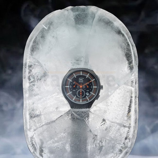 Glock Uhr Chrono Set GWC0003 - Stylische und langlebige Uhr mit Saphirglas, Solaruhrwerk und einem vollständigen Titan-Gehäuse. Wasserdicht bis zu 10 ATM mit einem eleganten matten schwarzen Mesh-Armband und einem zusätzlichen orangefarbenen Silikonarmban