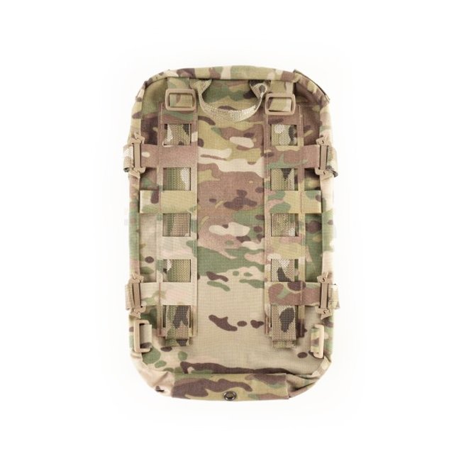 Das Hauptfach des Rucksacks wird mit einem Zwei-Wege-Reißverschluss umlaufend verschlossen. Die Innenseite des Haupt- und des kleinen Fachs ist mit Klett ausgekleidet, sodass Sie zusätzliche Organizer und Trennelemente anbringen können. Im oberen Teil des Hauptfachs befindet sich ein Griff zur Aufnahme eines Trinkrucksacks. Die Schlauchlöcher befinden sich jeweils rechts und links und sind zusätzlich mit einer Gummilasche geschützt. Der Rucksack wird mit einem Satz Kompressionsriemen geliefert, mit denen die Kapazität des Rucksacks reduziert werden kann. Der Rucksack hat ein zweifaches Tragesystem; Er kann mit dem MOLLE PALS-System auf jedem Plattenträger montiert oder nach Anbringen zusätzlicher Schultergurte als eigenständiger Rucksack getragen werden.