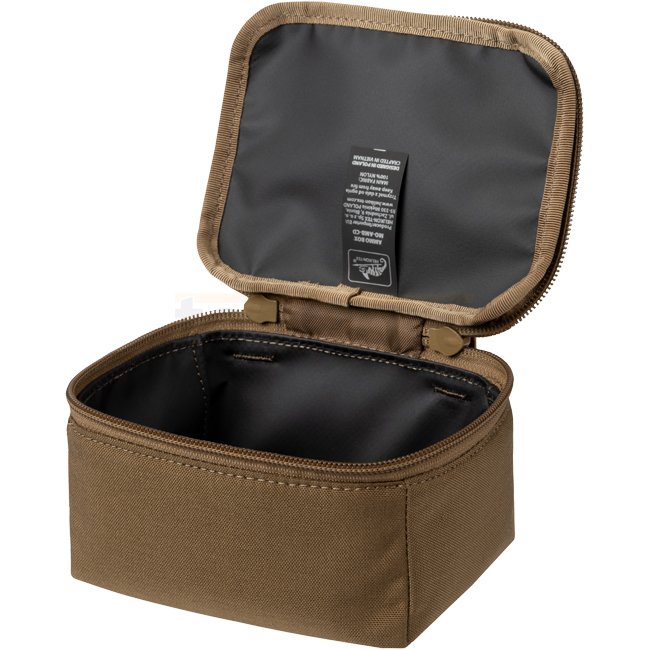 Die Ammo Box dient zum bequemen Aufbewahren und Transportieren von Schusswaffenmunition. Dank der geringen Abmessungen kann die Box in Rangemaster- und Range-Taschen transportiert werden und dient somit als zusätzlicher Schutz, was besonders bei handgeladener Munition wichtig ist. Die Innenseite ist mit einem schmutzabsorbierenden und leicht zu reinigenden Stoff gefüttert und die Außenschicht besteht aus strapazierfähigem Cordura 500D. Es passen drei handelsübliche 9×19mm-Munitionspakete hinein, aber Sie können auch lose eingefüllte Munition im Inneren transportieren.
