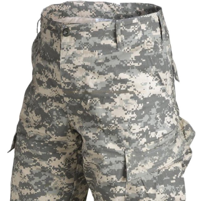 Der Schnitt dieser Uniform entspricht demjenigen der originalen ACU (Army Combat Uniform) der United States Army. So verfügt die wie das Original über die gleiche Taschenanordnung: 2x Gesässtasche, 2x Oberschenkeltasche, 2x kleine seitliche Taschen, 2x vertikaler Hosensack. Beim Original wird das Muster ARPAT (Army Pattern = Army Muster) genannt, bei diesem Produkt wird der allgemein gängige Begriff „ACU“ verwendet. Dieses Muster eignet sich aufgrund des hohen Grau-Anteils sehr gut für Kiesgruben sowie andere steinige Umgebungen.