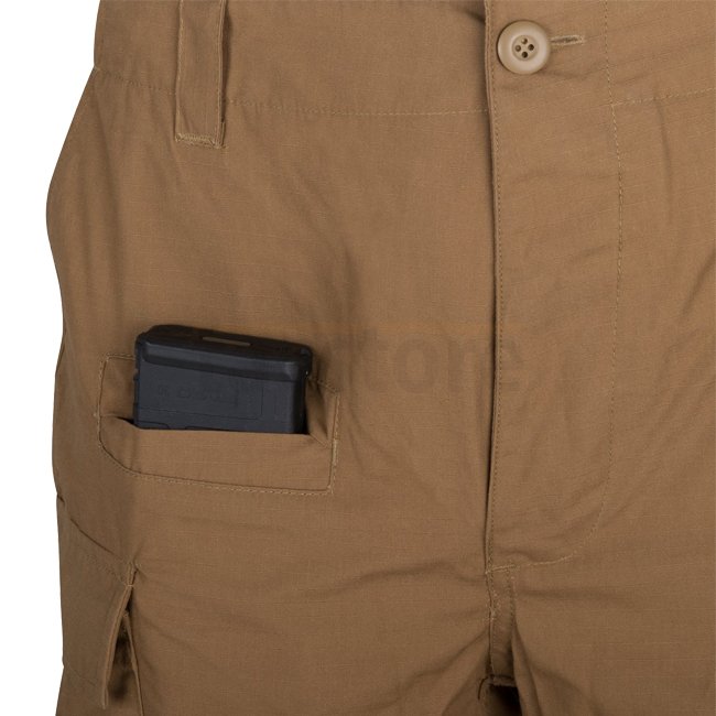 Helikon-Tex BDU MK2 Hose in Coyote-Farbe, Größe XS, Regular. Modernisierte Version der Battle Dress Uniform mit verstärkten Knien und Gesäß. Zusätzliche Smartphone-Tasche, verstellbarer Bund und klassische Cargotaschen. Ideal für den Feldeinsatz und urban