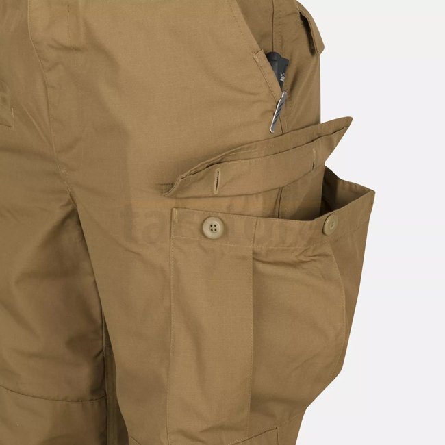 Die Helikon-Tex BDU Mk2 Hose ist eine aktualisierte Version der klassischen Battle Dress Uniform Hose, die den Anforderungen moderner Nutzer gerecht wird. Hergestellt aus einer strapazierfähigen Baumwoll-Polyester-Mischung in Ripstop-Webart, bietet diese Hose erhöhte Widerstandsfähigkeit gegen Abrieb und Risse. Sie verfügt über sieben durchdacht platzierte Taschen, darunter zwei Haupttaschen mit verstärkten Kanten, zwei Gesäßtaschen mit Klettverschlüssen, zwei geräumige, geknöpfte Cargo-Taschen und eine kleinere Fronttasche, die sich für Gegenstände wie ein Smartphone eignet. Zusätzliche Verstärkungen an den Knien und im Gesäßbereich erhöhen die Langlebigkeit, während verstellbare Taillenriemen und Nylonbänder an den Beinabschlüssen eine individuelle Anpassung ermöglichen.