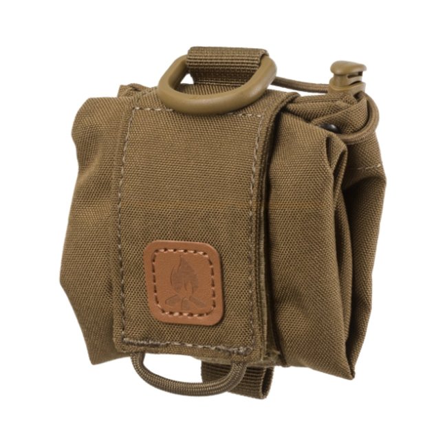 Helikon-Tex Bushcraft Dump Tasche in Olivgrün, hergestellt aus Cordura 500, bietet große Kompatibilität mit MOLLE/PALS/DUTY BELT Systemen. Kann eine 1-Liter-Flasche, Handschuhe und Überlebensausrüstung tragen. Ausgestattet mit einer Klappe mit Klettversch
