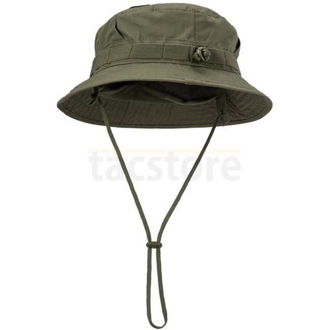 Militärhut im britisch/australischen Stil mit verstellbarem Rand und versteckten Mesh-Tunneln für Luftzirkulation. Ideal für Waldoperationen, bietet effektive Kopftarnung. Hergestellt aus 100% Baumwolle, Gewicht 113g. Merkmale atmungsaktive Mesh-Tunnel, S