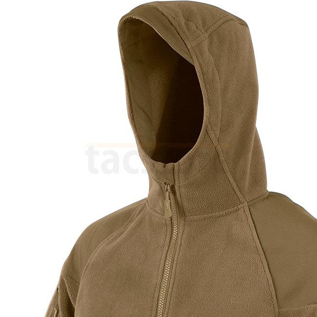 Cumulus Heavy Fleece Jacket - Coyote - 2XL. Polyester-Material, 750g Gewicht. Zwei-Wege-Hauptreißverschluss, externe Reißverschlusstaschen, interne Brusttaschen, Klettverschlusspanels an den Ärmeln, visierter Kapuze, elastische Ärmelbündchen, Nylonverstär