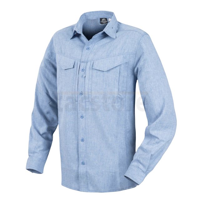 Das Helikon-Tex Defender Mk2 Gentleman Hemd in Melange Hellblau in 2XL ist ein leichtes und atmungsaktives Hemd aus Nylon und Polyester. Es bietet UV-Schutz (UPF30) und verfügt über einen anatomischen Schnitt, einen nicht rollenden Kragen, mehrere Taschen
