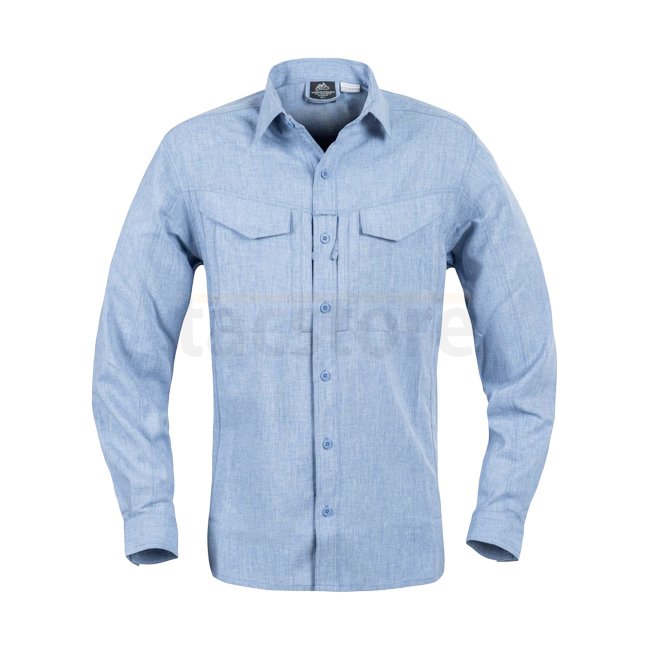 Das Helikon-Tex Defender Mk2 Gentleman Shirt in Melange Hellblau ist ein atmungsaktives und schnell trocknendes Hemd aus leichtem, elastischem Stoff mit UPF30-Schutz. Zu den Merkmalen gehören ein anatomischer Schnitt, ein nicht rollender Kragen, mehrere T