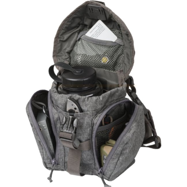 Der Helikon Essential Kitbag® wurde entwickelt, um alle wichtigen Bushcraft-/Survival-Utensilien transportieren zu können. Diese Tasche bietet Platz für eine Wasserflasche mit Becher, einen Klappkocher, Taschenlampe, Kompass, Kordel, Nähzeug usw., alles ordentlich und sicher in separaten Taschen untergebracht. Auf der Rückseite befindet sich eine Öffnung in welcher eine Klappsäge, ein Messer oder eine Axt verstaut werden kann, zudem können an der Vorderseite zusätzliche Pouches über MOLLE angebracht werden. Der Helikon Essential Kit Bag kann entweder über MOLLE/PALS oder mit eigenem Schultergurt an einem Rucksack oder Gürtel befestigt getragen werden.