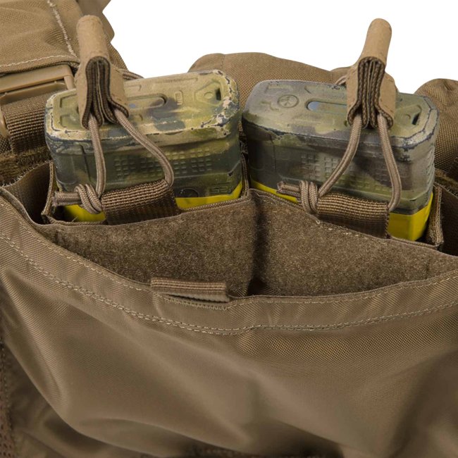 Der Guardian Chest Rig ist eine universelle Plattform zur Aufnahme von Munition und persönlicher Ausrüstung. Kompatibel um zusammen mit einem Rucksack und einem Gürtelsatz. Je nach Größe der Magazine kann die Höhe der feststehenden pouch flaps angepasst werden, auch austauschbare Magazineinsätze können entsprechend umgestellt werden.