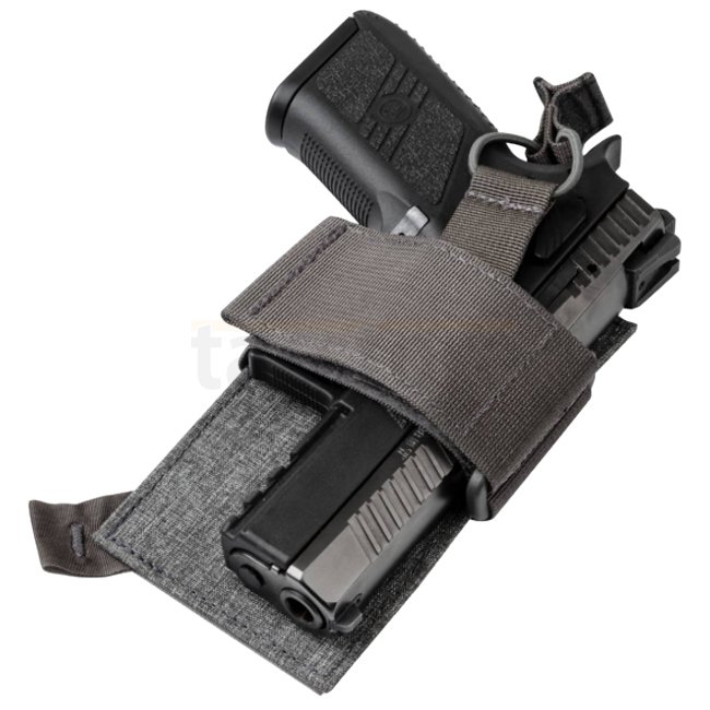 Dieser graue Melange Inverted Pistol Holder Insert von Helikon-Tex ist ein kompaktes und vielseitiges Zubehör zum sicheren Tragen Ihrer Pistole mit Stil.