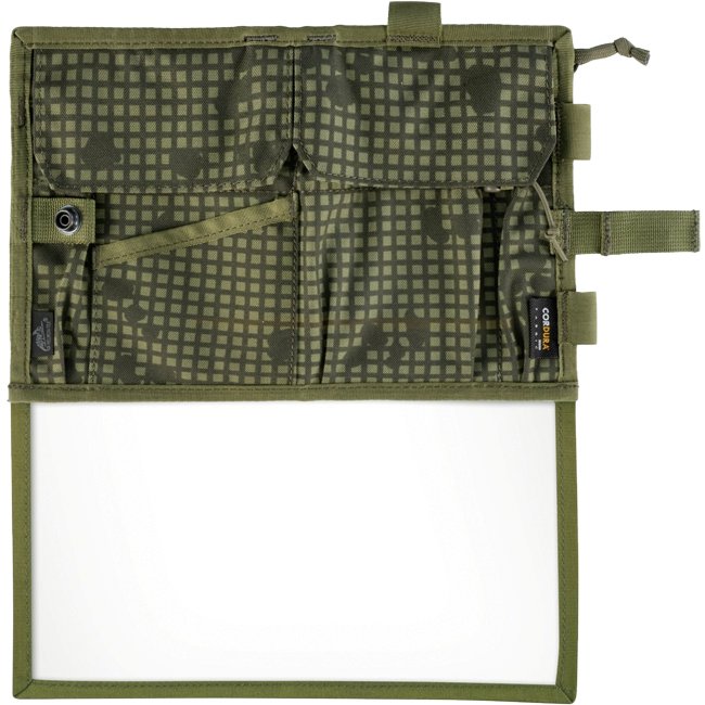 Die Helikon-Tex Kartenhülle - Desert Night Camo ist eine kompakte Tasche aus strapazierfähigem 500D Cordura-Stoff. Sie verfügt über ein transparentes, mit Reißverschluss versehenes Innenfach, um Ihre Karte unter allen Wetterbedingungen zu schützen, sowie