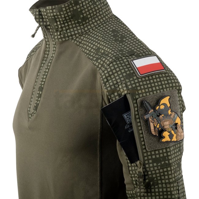 MCDU Combat Shirt von Helikon‑Tex ist Teil der Modern Combat Duty Uniform und für dynamische Einsätze optimiert. Der Torso besteht aus leichtem, atmungsaktivem TopCool® Stretch‑Polyester; Ärmel und Stehkragen aus strapazierfähigem NyCo Stretch Ripstop (50 % Baumwolle / 50 % Nylon) vereinen Haltbarkeit mit Bewegungsfreiheit.
