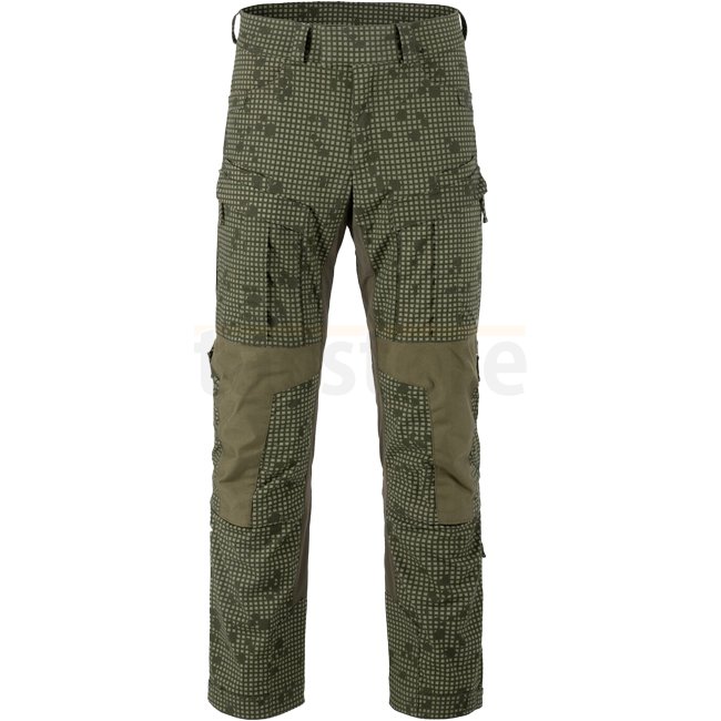 In wichtigen Bereichen (Taille, Schritt und Kniekehlen) wurden Einsätze aus Versastrech-Material verwendet. Es trocknet schnell und ist hoch atmungsaktiv. Der Kniebereich ist mit 500D Cordura-Gewebe mit Schlitzen für Schutzeinsätze verstärkt. Dank zusätzlicher Kordeln, die sich unter dem Knie und am unteren Beinende befinden, lässt sich die Hose leicht an das Bein anpassen.