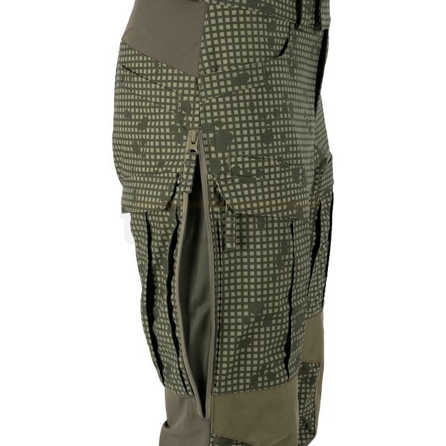 In wichtigen Bereichen (Taille, Schritt und Kniekehlen) wurden Einsätze aus Versastrech-Material verwendet. Es trocknet schnell und ist hoch atmungsaktiv. Der Kniebereich ist mit 500D Cordura-Gewebe mit Schlitzen für Schutzeinsätze verstärkt. Dank zusätzlicher Kordeln, die sich unter dem Knie und am unteren Beinende befinden, lässt sich die Hose leicht an das Bein anpassen.