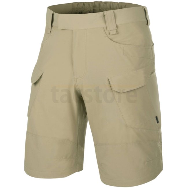 Leichte, atmungsaktive Helikon-Tex OTS Outdoor-Taktische Shorts 11 Lite in Khaki, aus dünnem VersaStretch Lite Stoff. Zu den Merkmalen gehören Hüfttaschen, Gesäßtaschen, Vordertaschen, Reißverschluss-Cargotaschen und Netzbereiche innerhalb der Taschen. Id