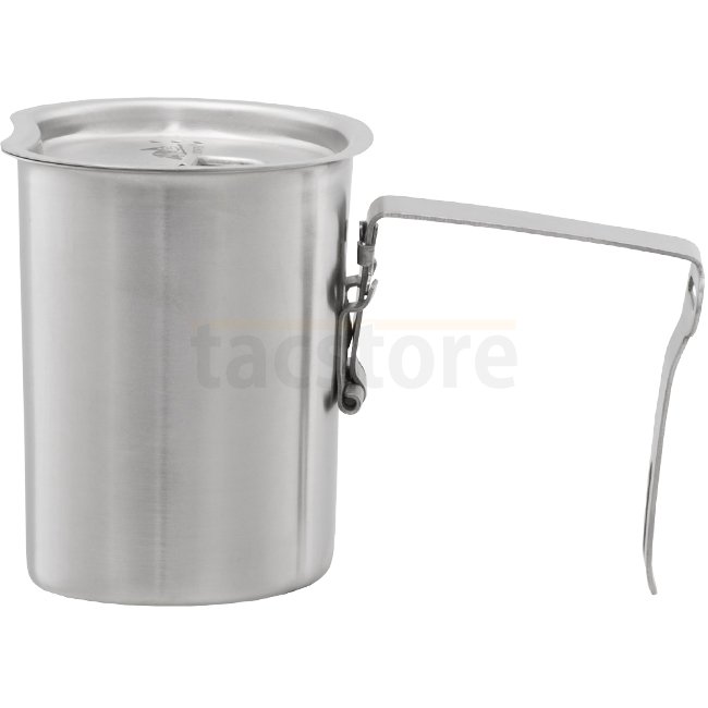 Das PATHFINDER Kochgeschirr mit Deckel dient der schnellen und bequemen Trinkwasserzubereitung während eines Campingausflugs. Robuster Edelstahl ermöglicht das Kochen von Wasser und Erhitzen von Mahlzeiten direkt auf einem Campingkocher, und der im Set enthaltene Deckel hilft, die Temperatur im Inneren der Tasse zu halten. Dank des klappbaren Griffs können wir den Becher sicher bedienen und Verbrennungen vermeiden.