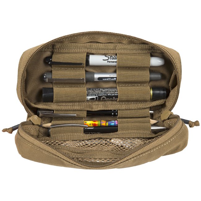 Helikon-Tex Federmäppchen-Einsatz - Olivgrün. Klett-Montagepaneel für einfache Integration. Elastische Schlaufen für Schreibgeräte. Reißverschlusstasche aus Netzmaterial für kleine Gegenstände. Vielseitig kompatibles Einsatzsystem. YKK-Reißverschluss.