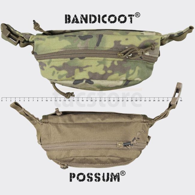 Die Possum Bauchtasche von Helikon ist vielseitig und kompakt, hat zwei Reißverschlusstaschen (eine auf der Rückseite) und ein Klettverschluss-ID-Panel. Abnehmbarer Hüftgurt / Bandoleer sowie MOLLE / PALS-Bänder und Netzinnentasche mit Reißverschluss. Der interne Organizer ist nicht entfernbar, was das Gewicht reduziert, jedoch sind alle wichtigen Funktionen vorhanden.