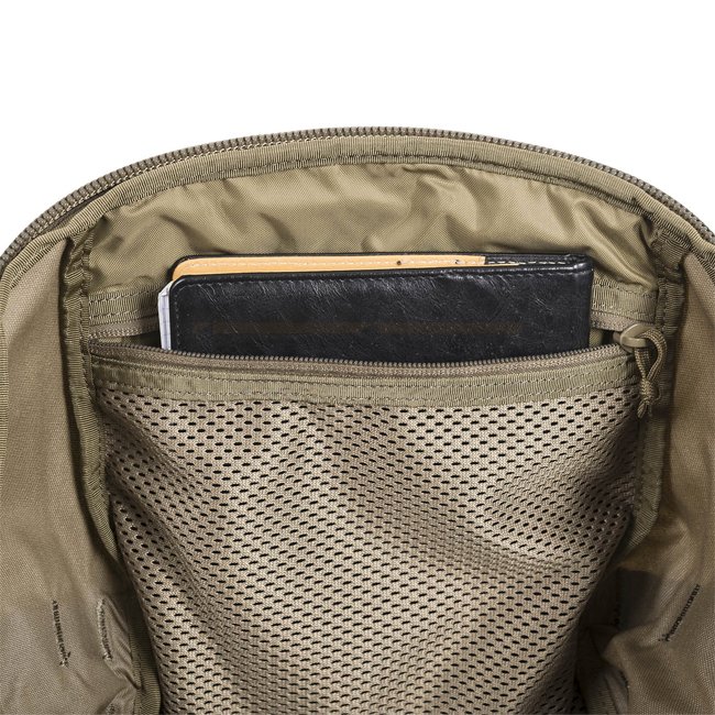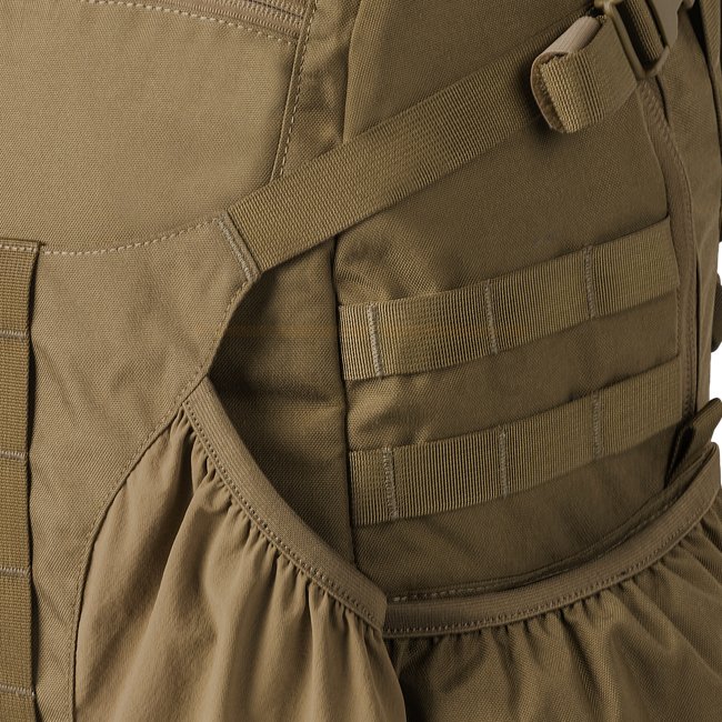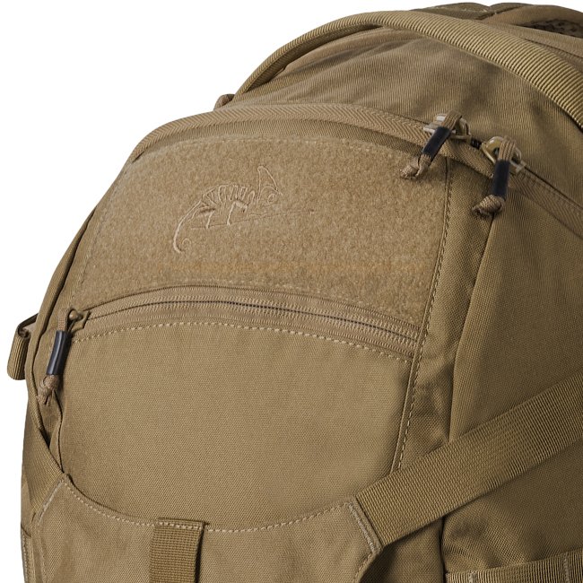 Helikon-Tex Raider Rucksack in Coyote-Farbe, hergestellt aus strapazierfähigem Cordura-Stoff mit Klett-ID-Panel, bequemem Tragegriff und anatomischen Schultergurten. Ausgestattet mit MOLLE/PALS-System, YKK-Reißverschlüssen, Aufhängung für Trinkblase und i