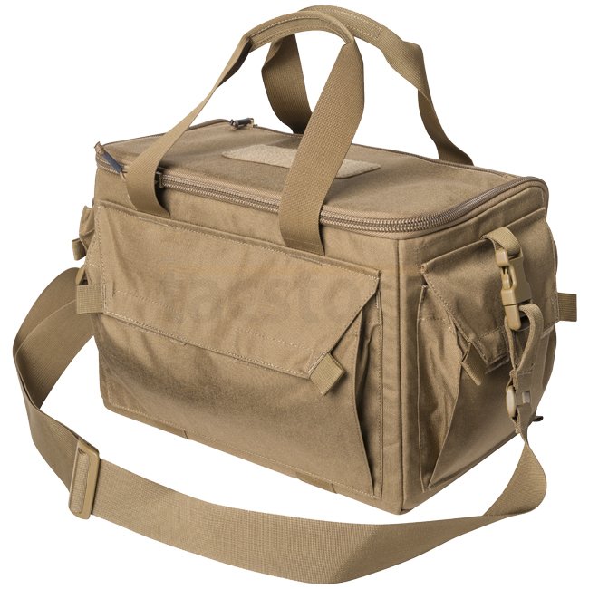 Mehrzweck Helikon-Tex Range Bag in Coyote-Farbe, hergestellt aus strapazierfähigem Cordura-Stoff. Ausgestattet mit einem Hauptfach mit Klett-Innenfutter, YKK-Reißverschlüssen und 18l Volumen. Abmessungen 350x255x200mm; Gewicht 1930g.