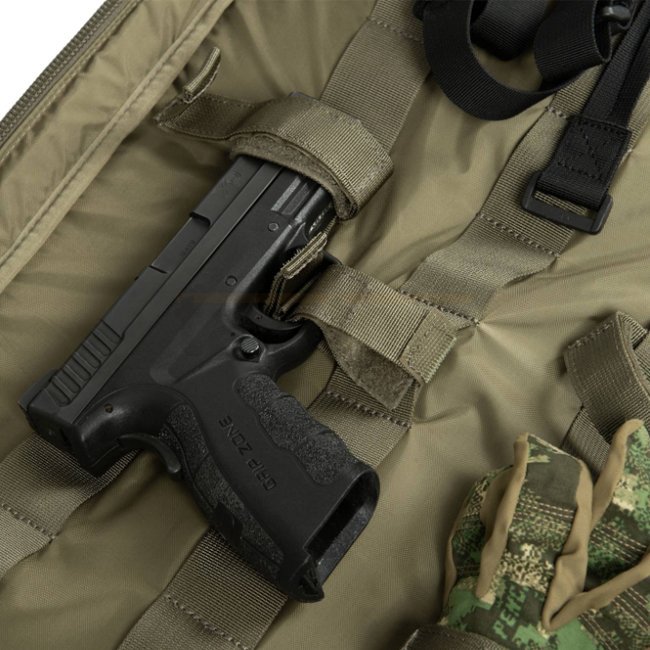 Auf dem Weg zum Schiessstand ist es essenziel, die Waffe wie auch das Zubehör bequem und sicher zu transportieren. Die SBR Carrying Bag von Helikon-Tex wurde speziell dafür entwickelt, Waffen wie SMGs, kurze Gewehre wie die AKS74U oder AR Systeme mit 10.5" Läufen aufzunehmen. Im Innern ist die Tasche mit weichem Velour-Material ausgekleidet um das Zerkratzen der Waffe zu verhindern. Zusätzlich sind Befestigungsmöglichkeiten vorhanden, welche durch Klett auf die jeweilige Waffe angepasst werden können und dadurch einen sicheren Halt während dem Transport gewährleisten. Die zwei aussen angebrachten Taschen bieten Platz für Ersatzmagazine, Augen- und Ohrenschutz, sowie Munition oder was man sonst noch auf dem Schiessstand griffbereit haben möchte.