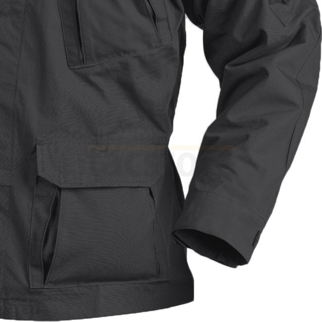 Das Helikon-Tex Special Forces Uniform NEXT Shirt in Schwarz, Größe XS, verfügt über ein klassisches Militäruniform-Design mit praktischen Lösungen. Es hat einen lässigen Kragen, eine stille Knopfleiste und sechs geräumige Taschen mit Klettverschlussklapp