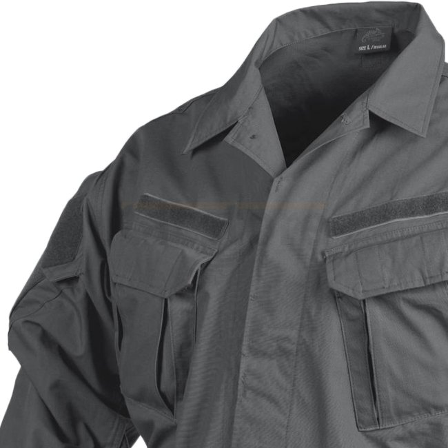 Klassisch und praktisch, das Helikon-Tex Special Forces Uniform NEXT Hemd in Grau XL verfügt über einen lässigen Kragen, geräuschlose Knopfleiste, sechs geräumige Taschen mit Klettverschlüssen und verstärkte Ellenbogen mit Einschubfächern für Ellbogenscho