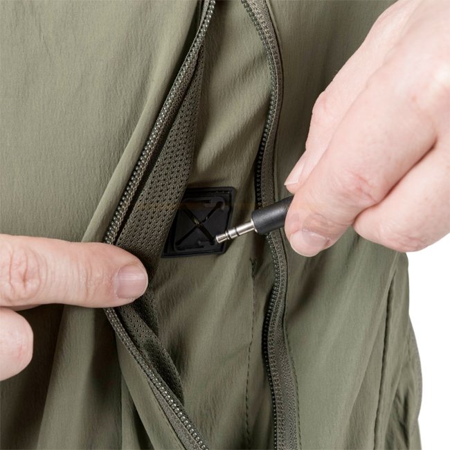 • Äußere Brusttaschen mit Kabelösen, D-Ringen und Geräteschlitzen