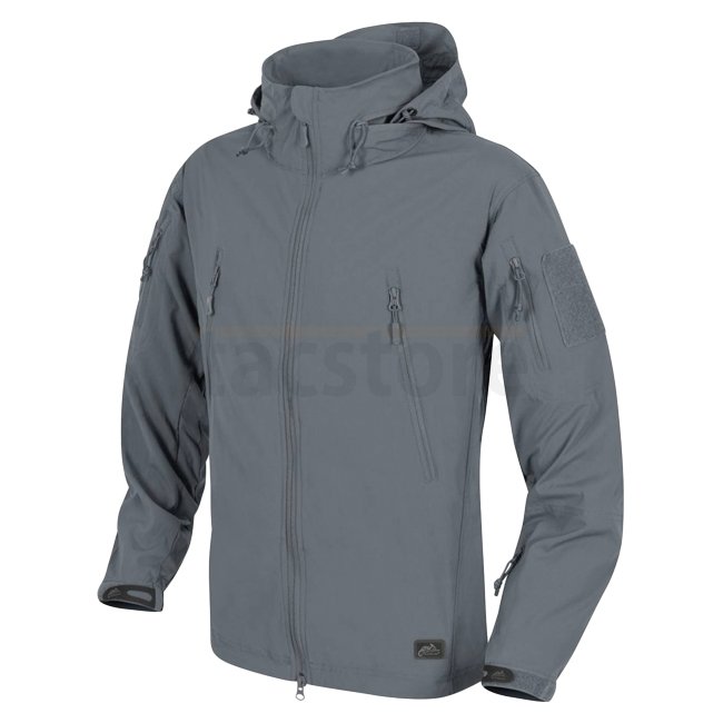 Die Helikon-Tex Trooper Jacke in Schatten Grau ist eine ultraleichte Softshell-Jacke, die Schutz vor leichtem Wind und Regen bietet und dabei atmungsaktiv bleibt.