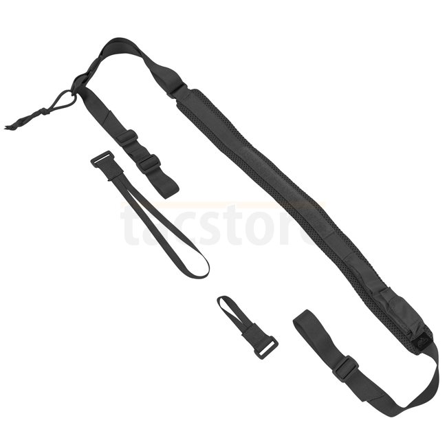 Helikon-Tex Zweipunkt Karabinerriemen - Schwarz: Hergestellt aus 25 mm breitem Nylon-Gurtband mit gepolstertem Komfortpolster, Klettverschluss-Batterietasche, Klettverschlussstreifen zur Personalisierung. Merkmale Schnellverstellsystem, WooJin Schnallen.