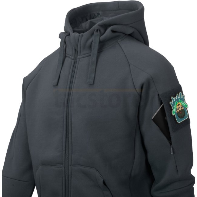 Leichte Kapuzenjacke mit Reißverschluss, ideal für städtische Einsätze. Verfügt über eine verstellbare Kapuze, elastische Bündchen, YKK-Reißverschluss, mehrere Taschen und ID-Paneele an den Armen. Hergestellt aus dickem, elastischem Baumwollmischgewebe.
