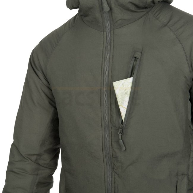Bleiben Sie warm und gemütlich mit dem Helikon-Tex Wolfhound Climashield Hoodie in Taiga Green XL. Leicht und verpackbar mit außen WindPack-Nylon. Verfügt über Climashield Apex Polsterung, mehrere Reißverschluss-Taschen, eine verstellbare Kapuze, eine Sch
