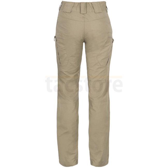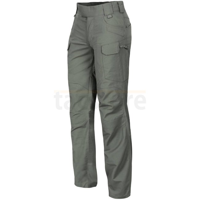 Helikon-Tex Damen UTP Urban Tactical Pants in Olivgrün, Größe 29 - 32. Anatomischer Schnitt mit zivilem Look, jedoch voll funktionsfähige Combat-Hosen. Elastischer, mit Klettverschluss geschlossener Gürtel, breite Gürtelschlaufen für taktische Gürtel. Ver
