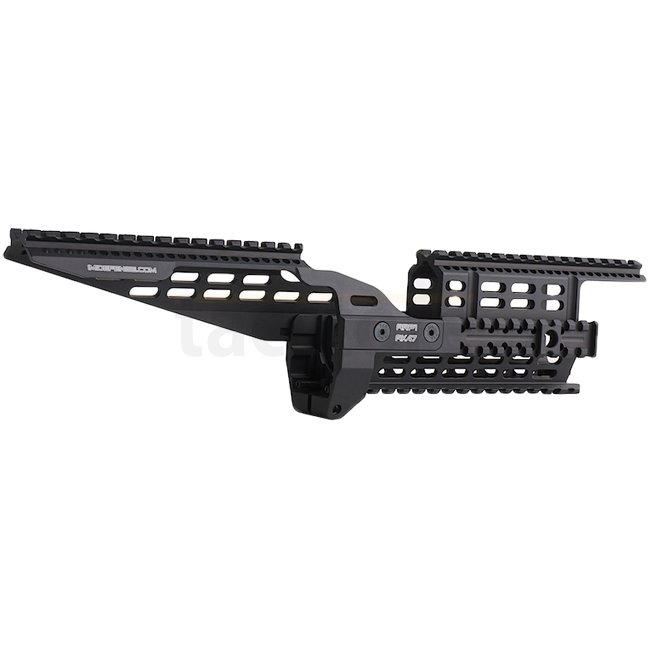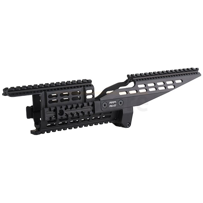 Das System verfügt über alle notwendigen Eigenschaften um die AK47 / 74 ins 21. Jahrhundert zu katapultieren. Das leichte und schlanke Design passt perfekt und sitzt satt. Das System wurde entwickelt, um die Montage von modernen Accessoires wie Lampen, Optik, Frontgriff und QD Sling Halterungen zu ermöglichen und dabei gleichzeitig überlegene Ergonomie und Bedienkomfort nicht ausser Acht zu lassen.