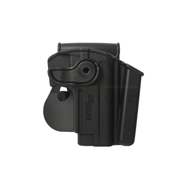 Hochbelastbares schwarzes Polymerholster mit Magazintasche für Sig Sauer Mosquito RH. Konturierte Passform, verstellbare Neigung, 360-Grad-Drehung. Ideal für Zivilisten, Beamte und Militärpersonal.