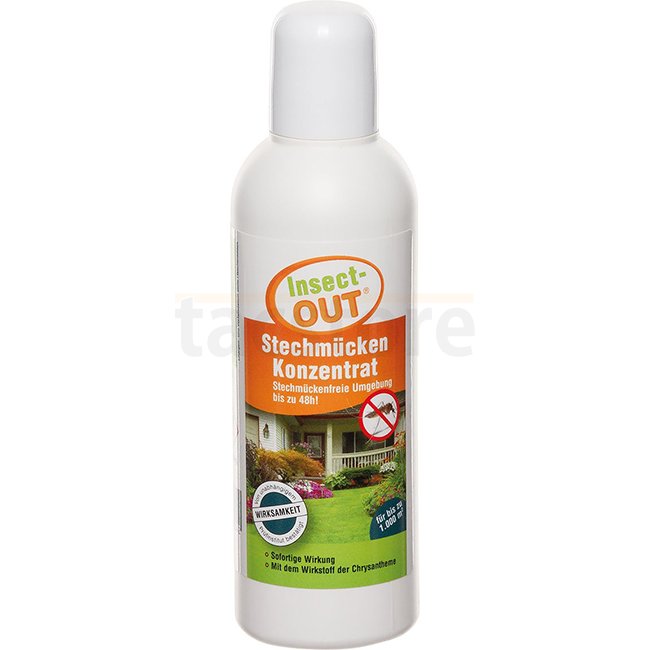 Insect-OUT Anti-Mücken Konzentrate 100 ml: Nachfüllung für Artikel-Nr. 27341A, ergibt 10L Lösung. Enthält 14,5g/kg Pyrethrine, 210g/kg Piperonylbutoxid, 45g/kg Cypermethrin.