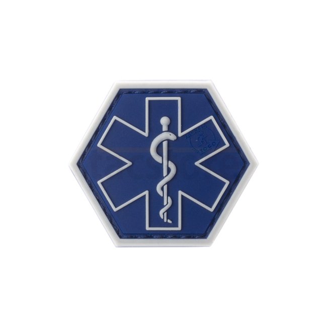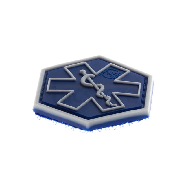 JTG Sanitäter Hexagon Gummi-Patch in Blauer Farbe, Abmessungen: 35 x 40 mm