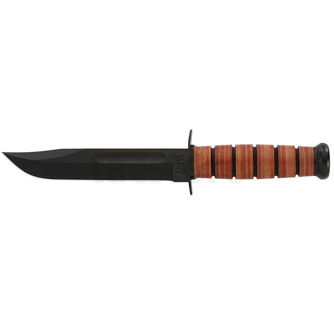 Das legendäre KA-BAR Full Size Military Fighting Utility Knife mit klingenloser Klinge und Lederscheide, das stolz seit dem Zweiten Weltkrieg US-Truppen dient.