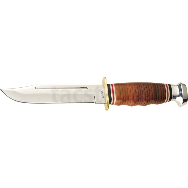 Jagdmesser im klassischen Stil mit Ledergriff sind seit den frühen 1900er Jahren beliebt. Elegant genug zum Verschenken und praktisch für den Außeneinsatz. Verfügt über einen Messingschutz und eine Aluminiumkappe. Kunststoffgefütterte KA-BAR-Lederscheide inklusive.