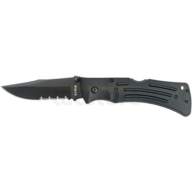 Ka-Bar Mule gezahnte Klinge - Schwarz: Robustes, schweres Klappmesser mit teilweise gezahnter Klinge zum Schneiden von strapazierfähigen Stoffen. Inklusive umkehrbarem Taschenclip und Polyester-Scheide.